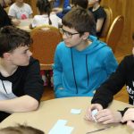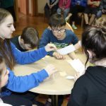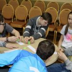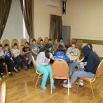 Всех участников игры путем жеребьевки разбили по командам, получилось 6 команд – 2 старших детей и 4 среднего школьного возраста. Каждая команда придумала название и выбрала капитана. Вопросы были разбиты на 6 блоков: блок музыки, кино, мультфильмов, истории, географии и т.д. Сами вопросы были разной степени сложности. У детей закипали мозги! Но они дружно обсуждали варианты ответов в командах и справились с заданиями. Победителей ждали призы! Все ушли воодушевленные своими знаниями!
