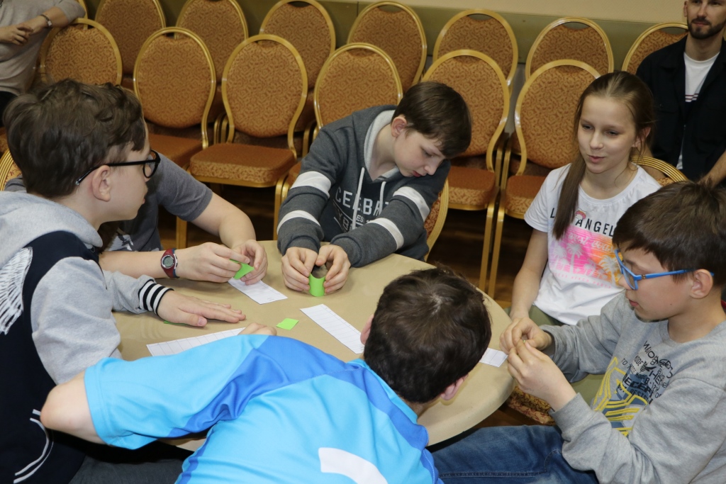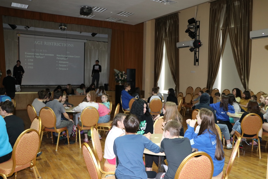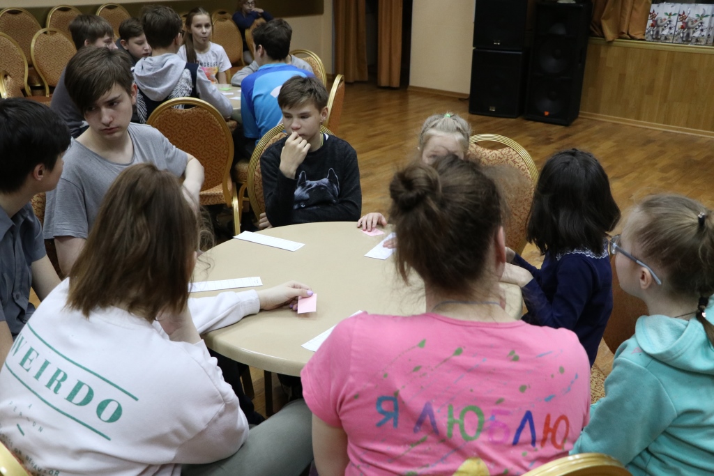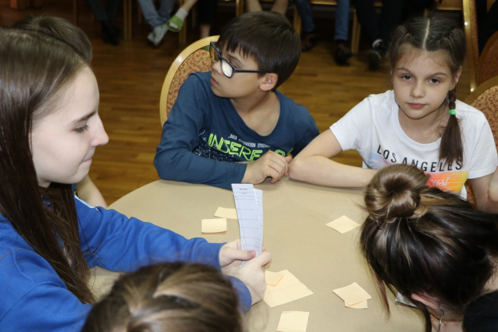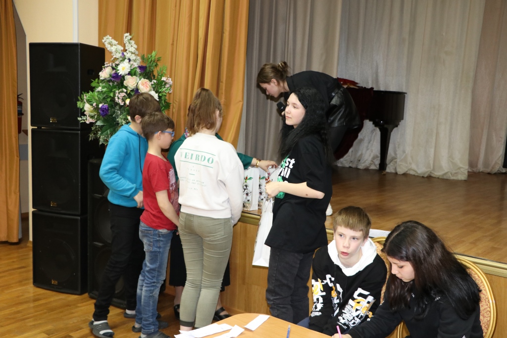 Всех участников игры путем жеребьевки разбили по командам, получилось 6 команд – 2 старших детей и 4 среднего школьного возраста. Каждая команда придумала название и выбрала капитана. Вопросы были разбиты на 6 блоков: блок музыки, кино, мультфильмов, истории, географии и т.д. Сами вопросы были разной степени сложности. У детей закипали мозги! Но они дружно обсуждали варианты ответов в командах и справились с заданиями. Победителей ждали призы! Все ушли воодушевленные своими знаниями!